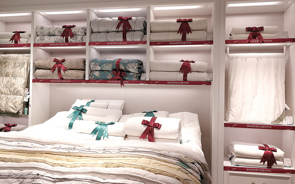 維科家紡鄞江店,面積近130平,地處鄞江鎮核心主干道四明西路,是通往龍觀、章水的必經之路。經過充分的市場調查,將該店定位成區域婚慶主題店鋪,主抓周邊婚慶顧客,在店鋪布局里充分考慮婚慶和芯類的區域,營造婚慶購物氛圍,開業當天,即有婚慶大單成交。